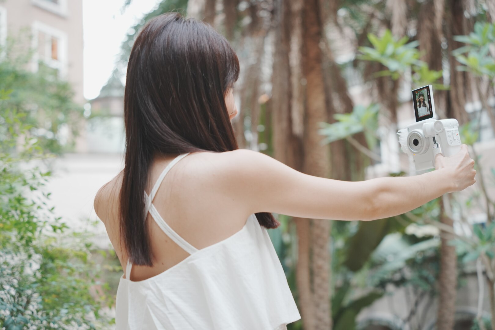 拍攝照片需要視每台相機的鏡頭焦段而調整,以 ZV-1F 為例,因為是廣角鏡頭,所以我滿喜歡拿它來自拍以及拍旅遊照片,看起來會較顯瘦,也比較容納得下更廣的景。